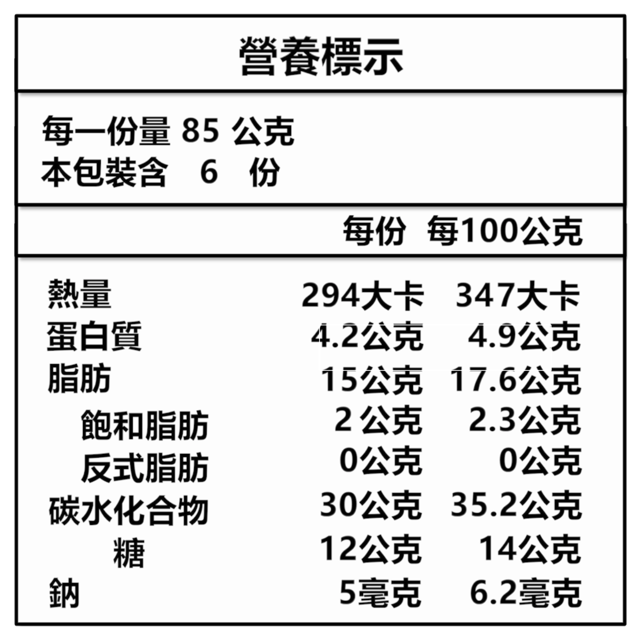 每片85公克